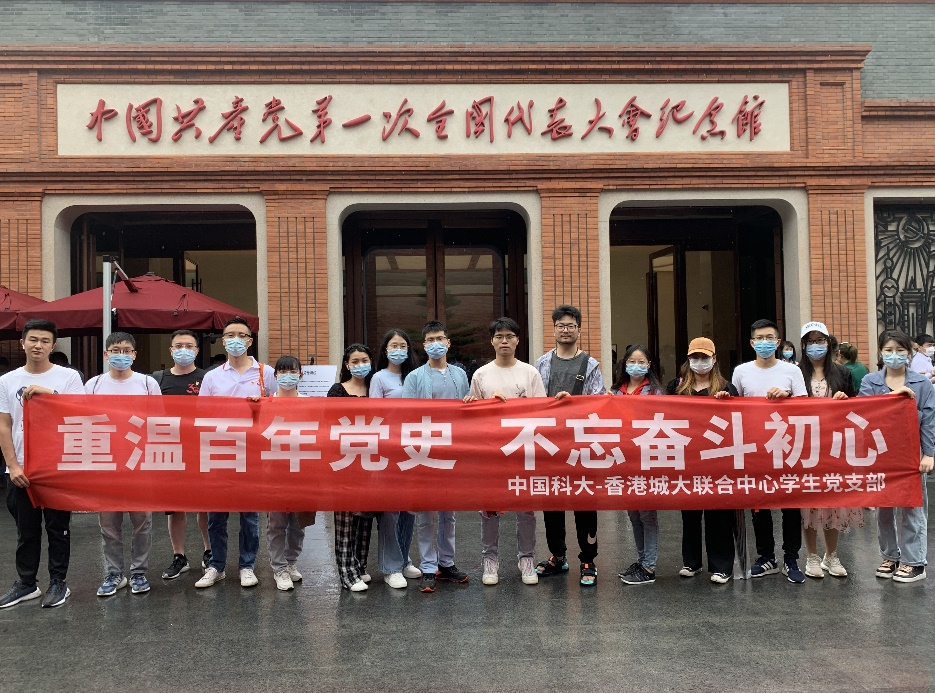 为纪念中国共产党成立100周年,加强党员同志对党史、革命史的认识学习,增强自身责任感和使命感,2021年6月19日中国科大-香港城大联合中心学生党支部(以下简称联合中心学生党支部)前往上海市黄浦区中共一大纪念馆,缅怀革命先烈,纪念百年党史,开展“重温百年党史,不忘奋斗初心”主题党日活动。本次活动由联合中心学生党支部付贤钟,胡振宇和席寒同志主持,参加此次活动的共有15名党员、预备党员和入党积极分子。